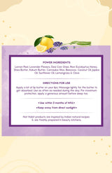 Kitchen fresh ultra moisturising Lip Butter made of Desi Ghee, Raw Honey and slow HEAT Infused lemon and lavender flowers. The Lemon Lavender lip butter is packed with the goodness of lemon, lavender flowers, desi ghee, eucalyptus honey, kokum butter, shea butter & pure cold pressed oils for express lip repair, moisturising nourishment and protection against aging, darkening, discoloration & pigmentation. ZERO chemicals & preservatives. ZERO mineral oil & paraffins.