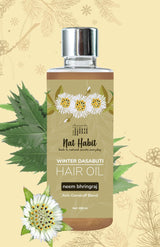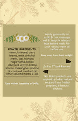 Kitchen fresh Hair Oil for dandruff control. Specially made with warming ingredients for Winter & Cold conditions. This Dasabuti oil is enriched for over 10HRS via Slow Heat Infusion of fresh neem, bhringraj, curry leaves, amla, shikakai, methi, tulsi, triphala, nagarmotha, harad, jaborandi & more in multiple oils such as castor, sesame & mustard. 16 Ayurvedic herbs infused for maximised results. All oils are PURE Cold Pressed. ZERO Paraffin & Mineral Oils. Zero chemicals & preservatives.