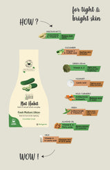 Kitchen made Multani Ubtan for breakout control, cooling and skin tightening of face & body. Extremely soothing and healing for undereye dark circles & puffiness. Packed with nourishing power ingredients such as Multani Mitti, Fresh Cucumber Juice, Moong, Raw Milk, Yoghurt, Wild Turmeric, Neem & more. 11 Power Ingredients in one.